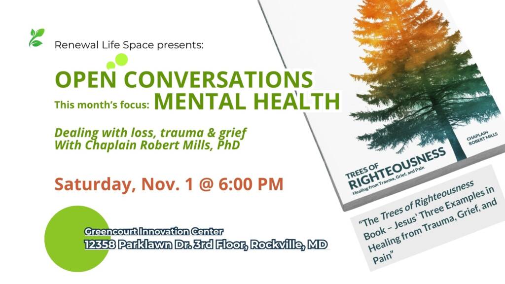 The Life Conversation Series starts in November with a special session on Mental Health, featuring Chaplain Robert Mills, PhD, author of “Trees of Righteousness: Healing from Trauma, Grief, and Pain.”
